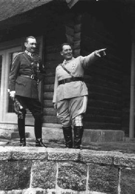 He also appreciated the military achievements of the Germans, although he came to acknowledge their difficulties in the Finnish wilderness. During Mannerheims service on the Polish border, Germany was the likely enemy and then became the actual enemy in the First World War. Nevertheless, Mannerheim was, within certain limits, prepared to fight alongside the Germans in 1918. Disagreement with the German representatives in May 1918 was one of the most important reasons for his resignation from the post of the Commander-in-Chief. In 1918 in his St Petersburg plans, Mannerheim partly counted on German assistance: a situation should be created in which Germany would act as a passive back prop and in which England would accept the advancing of the Finnish troops into Russian territory. In Mannerheims view, "the war will not end in a glorious victory of either side, therefore Finland should not have disagreements with any empire". It was important for Finland to have general sympathy on her side in the peace negotiations, which "we can have, for we have fought against anarchism and on the side of order and culture". But Germany was weaker than Mannerheim believed. Between the world wars Mannerheim travelled a great deal in Germany and, as the chairman of the Defence Council, he was willing to buy weapons from Germans, but these intentions did not meet with much success. At the outbreak of the Second World War, Mannerheim was clearly on the side of the Western Powers and against the enslavers and "disturbers of peace". The consequences of Stalins and Hitlers pact e.g. the Winter War only strenghened his belief. When Norway fell in the hands of the Germans, Finlands military political position was changed into that of encirclement, which led to a situation, in which Finland had to try to adjust to German influence. Germany began to approach Finland expressly via the "military way" in her preparations for the forth-coming Barbarossa operation., and it was with Mannerheim that the arms dealer Veltjens first began the transit negotiations. In the winter of 1940 and 1941 Mannerheim encouraged the determination of the Finnish government to oppose the Soviet demand of the control of the Petsamo nickel mine. In May and June 1941 some officers, authorized by Mannerheim, negotiated with the Germans an advance plan of coordination, in case a war should break out between Germany and the Soviet Union. When that war then broke out on 22 June (in Finland on 25 June), Mannerheim regarded the above-mentioned "talks" as obliging for himself, if the measures taken were in keeping with the Finnish interests and accepted by the leaders of the state. There was a very special "brotherhood in arms" between Germany and Finland, which was not based on a union pact. A number of Jews, for example, fought in the ranks of the Finnish army, although that would have been impossible in the German army. During the "brotherhood" Mannerheim endeavoured to take advantage of his relations with Germany e.g. through Göring to liberate some persons imprisoned by Germans. The decision not to return to Germany Jew refugees charged for different reasons was partly based on Mannerheims authority. In summer 1941 Mannerheim seems to have estimated that Germany would defeat the Soviet Union rapidly. In October and November 1941 he had to amend this estimate, when the German attack was halted by severe weather conditions. In 1942, when the troops of the Western Powers invaded western Africa, he was more and more convinced that Germany would lose the war. The Germans supported Mannerheim in warfare, but were suspicious of his well-known Anglophile attitudes. When the warfare of the Finns became passive, the Germans had a good reason to blame him for defeatism. When the Soviet Union was threatening Finland with a large-scale offensive and the demand of surrender, President Ryti made a personal promise in order to secure German aid that Finland would not conclude a separate peace (the so-called Ribbentrop agreement). This created a union relationship, but Mannerheim, as President, did not consider himself being obliged by this promise. In early September 1944 he wrote a letter to Hitler informing him that Finland was forced to conclude an armistice with the Soviet Union. In a few weeks time Germany tried to occupy the island of Suursaari in the Gulf of Finland, which led into war operations between Germany and Finland. In Finland this war is called the Lapland War (1944-1945). |