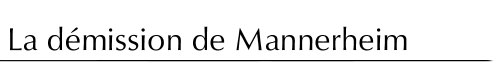 | Le geste était naturellement lié à l'instauration d'un détenteur du pouvoir suprême - un régent - décidée le 18 mai et au renouvellement prévisible du Sénat. D'un autre côté, il donnait sa démission « pour en finir avec les magouilles et pour voir s'il avait vraiment le gouvernement derrière lui ». Mannerheim a rapporté être exaspéré par les incessantes intrigues et la déplaisante mesquinerie s'exprimant en toutes les choses. L'écart entre ses opinions et celles du Sénat était énorme. « Le gouvernement, derrière mon dos et sans en parler avec moi, avait fait élaborer par les Allemands un projet de service de défense de la Finlande. » La décision de déposer sa demande de démission mûrit après la Grand Défilé. Un coup psychologique déterminant fut sans doute que le Sénat, désormais sous l'influence allemande, se montrait réservé envers le plan Mannerheim sur Saint-Pétersbourg. Le discours prononcé au nom de l'armée lors du Grand Défilé n'avait pas non plus reçu l'écho escompté. Il n'est guère possible d'évaluer si Mannerheim crut alors devoir effectivement démissionner. Il fut présenté le 23 mai à Mannerheim au Sénat une proposition fondée sur l'avis du général allemand Rudiger von der Goltz portant, entre autres choses, sur la création d'un ministère de la Guerre, dont le ministre assurerait le commandement en chef. Ce ministre serait nommé par le détenteur de l'autorité suprême. Il fut proposé à Mannerheim d'organiser l'armée selon le système allemand, mission pour laquelle il serait assisté par des officiers allemands agissant en tant qu'instructeurs et conseillers. Il répondit en posant des conditions à son maintien. Il voulait rester indépendant du Sénat et du ministère de la Guerre pour toutes les questions d'ordre militaire. Selon lui le ministre de la Guerre ne devait être qu'un fonctionnaire, un civil pouvant ainsi très bien suffire pour le poste. Mannerheim voulait décider lui-même des fonctions et statuts à accorder aux Allemands. Il était bien prêt à utiliser le modèle de l'armée allemande et l'aide d'officiers allemands, mais il craignait que les Allemands cherchent à contrôler l'armée finlandaise et par-là la politique extérieure du pays ; il ne voulait pas « que nous nous jetions dans les bras des Allemands » ni « devenir un pantin entre les mains des Allemands ». Les entretiens au sujet de la politique extérieure et du projet d'investissement de Saint-Pétersbourg accentuèrent le différend. Mannerheim mit le Sénat en garde contre une éventuelle attaque directe en Carélie orientale et souligna les intérêts des monarchistes de Saint-Pétersbourg, tandis que les Sénateurs l'engagèrent à ne pas trop se fier aux promesse des Russes au sujet de la Carélie orientale. La demande de démission de Mannerheim se trouva maintenue. En réponse aux exigences minimales de Mannerheim, von der Goltz avisa Svinhufvud qu'il ne pourrait pas accepter de soumettre des officiers allemands aux ordres d'officiers suédois, que le nombre d'officiers allemands prévu dans le projet ne devait pas être réduit et qu'il ne pouvait être question de la libre disposition ni de la libre localisation de ces officiers. Le Sénat éprouvant trop de mal à renoncer à l'aide allemande, il fut décidé d'accepter la démission de Mannerheim, ce qui lui fut signifié le 29 mai par le régent Svinhufvud. La principale raison de la mésentente doit être vue dans le désir de Mannerheim de préserver la liberté d'action de la Finlande. Les espoirs de prise de Saint-Pétersbourg apparaissant vains, il n'est pas étonnant que Mannerheim perde toute envie d'abonder davantage dans le sens des exigences des Allemands. Il n'avait donc plus aucun motif intéressant de rester. En situation de négociations, les «mesquineries» quotidiennes pouvaient être aussi décisives que les vues sur les résultats de la Guerre mondiale. Mannerheim lui-même tint encore des décennies plus tard pour raison majeure de son départ la déloyauté du Sénat.