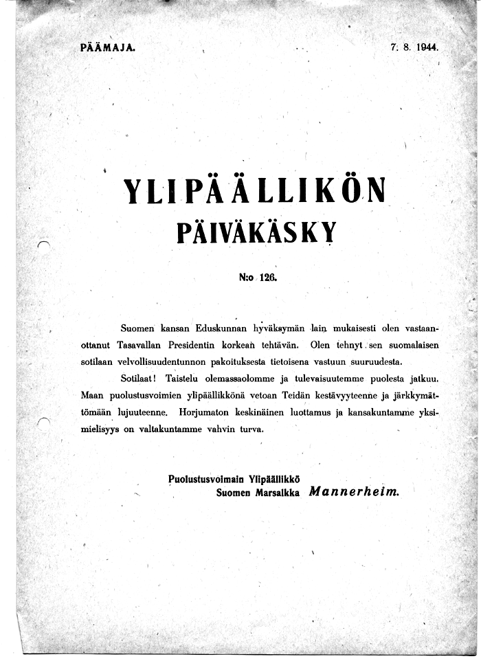 ELÄMÄNKAARI | SUKU JA PERHE | KASVUAIKA | SOTILASURA | VAPAUSSOTA | VALTIONHOITAJA 1918-1919 | SIVIILISSÄ | PUOLUSTUSNEUVOSTO | YLIPÄÄLLIKKÖ 1939-1946 | TASAVALLAN PRESIDENTTI 1944-1946 | ELÄKEVUODET | ERITKOISAIHEET |